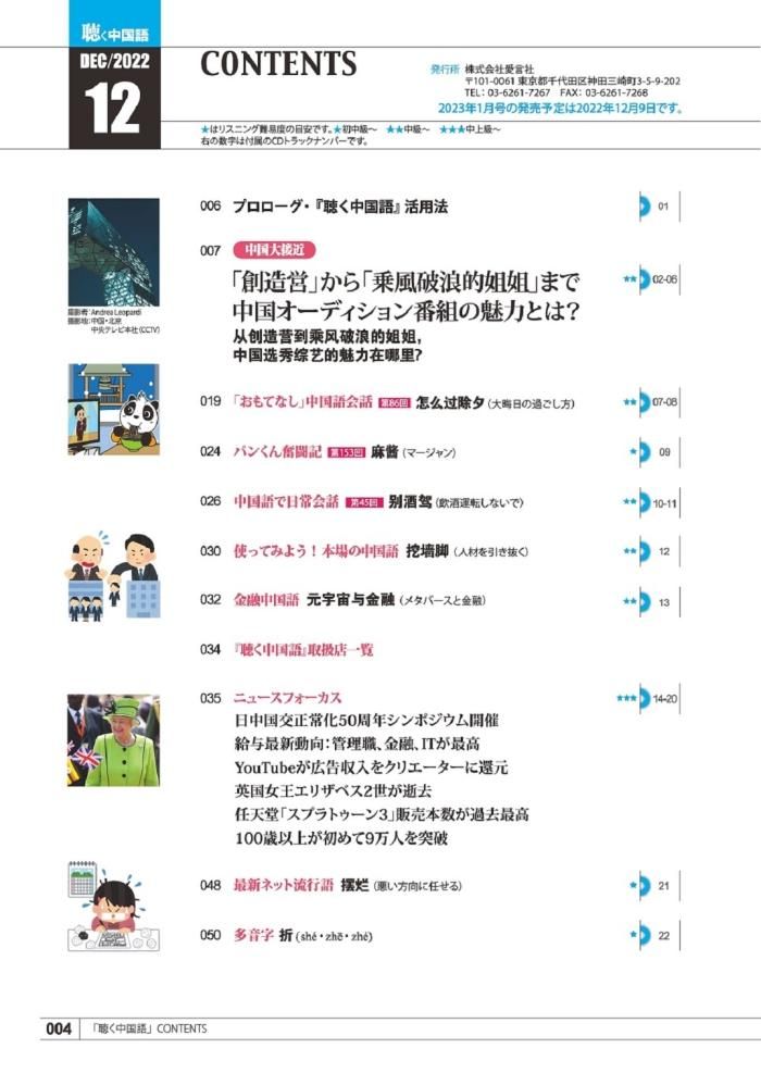 KIKUCHU 月刊『聴く中国語』 2022年12月号(252号)―「創造営」から「乗風破浪的姐姐」まで 中国オーディション番組の魅力とは?