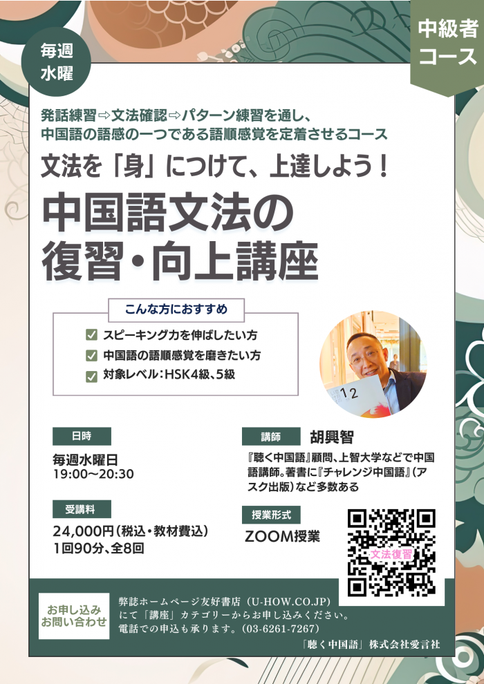 #035K文法を「身」につけよう! 中国語文法の復習・向上講座(水曜19時)のレビュー